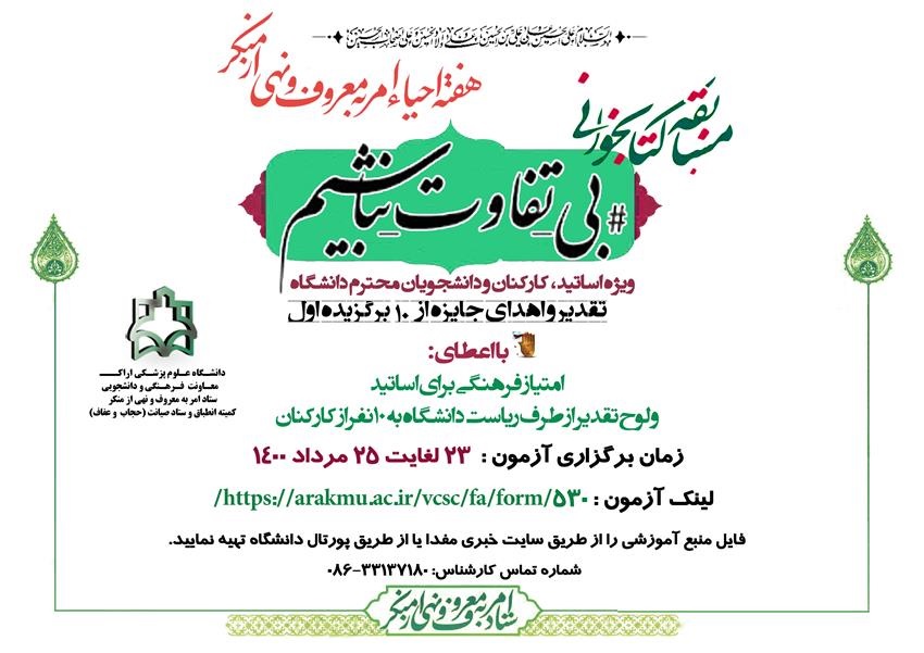 مسابقه کتابخوانی بی تفاوت نباشیم ۲۰ مرداد ۱۴۰۰ | ۰۹:۱۲ کد : ۱۹۲۷۳ اطلاعیه ارسال به دیگران نام شما ایمیل شما ایمیل دریافتکننده ارسال انصراف تعداد بازدید:۲۹۶۴۲ لینک ورود به آزمون
