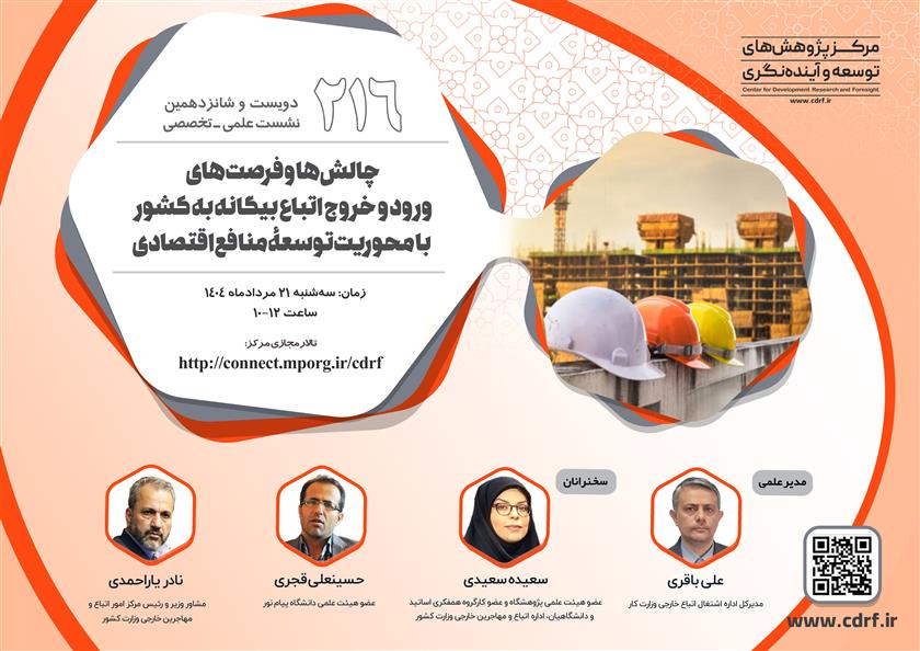 نشست علمی - تخصصی "چالش ها و فرصت های ورود و خروج اتباع بیگانه به کشور با محوریت توسعه منافع اقتصادی"