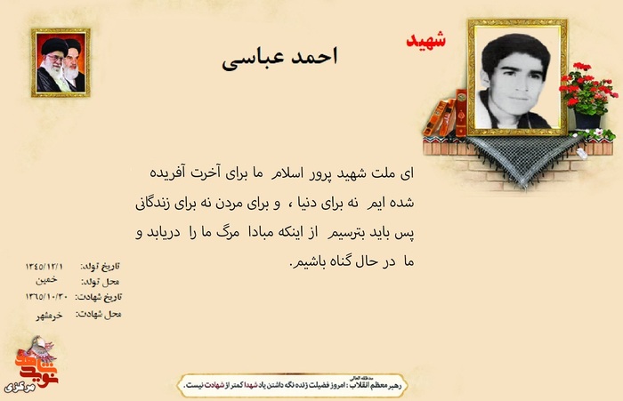 فرازی از وصیت نامه شهدا ۱۳ دی ۱۴۰۴ | ۱۰:۰۱ کد : ۵۷۴۶۹ اطلاعیه ارسال به دیگران نام شما ایمیل شما ایمیل دریافتکننده ارسال انصراف تعداد بازدید:۱۳۶ فرازی از وصیت نامه شهدا فرازی از وصیت نامه شهید بزرگوار احمد عباسی :