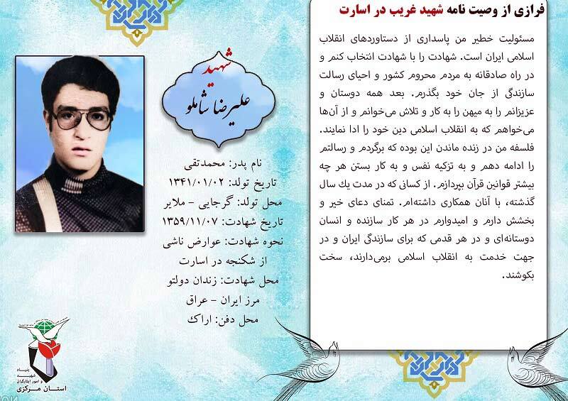 فرازی از وصیت نامه شهدا ۰۵ بهمن ۱۴۰۴ | ۰۹:۴۵ کد : ۵۷۶۸۳ اطلاعیه ارسال به دیگران نام شما ایمیل شما ایمیل دریافتکننده ارسال انصراف تعداد بازدید:۱۳۲ فرازی از وصیت نامه شهدا فرازی از وصیت نامه شهید بزرگوار علیرضا شاملو :