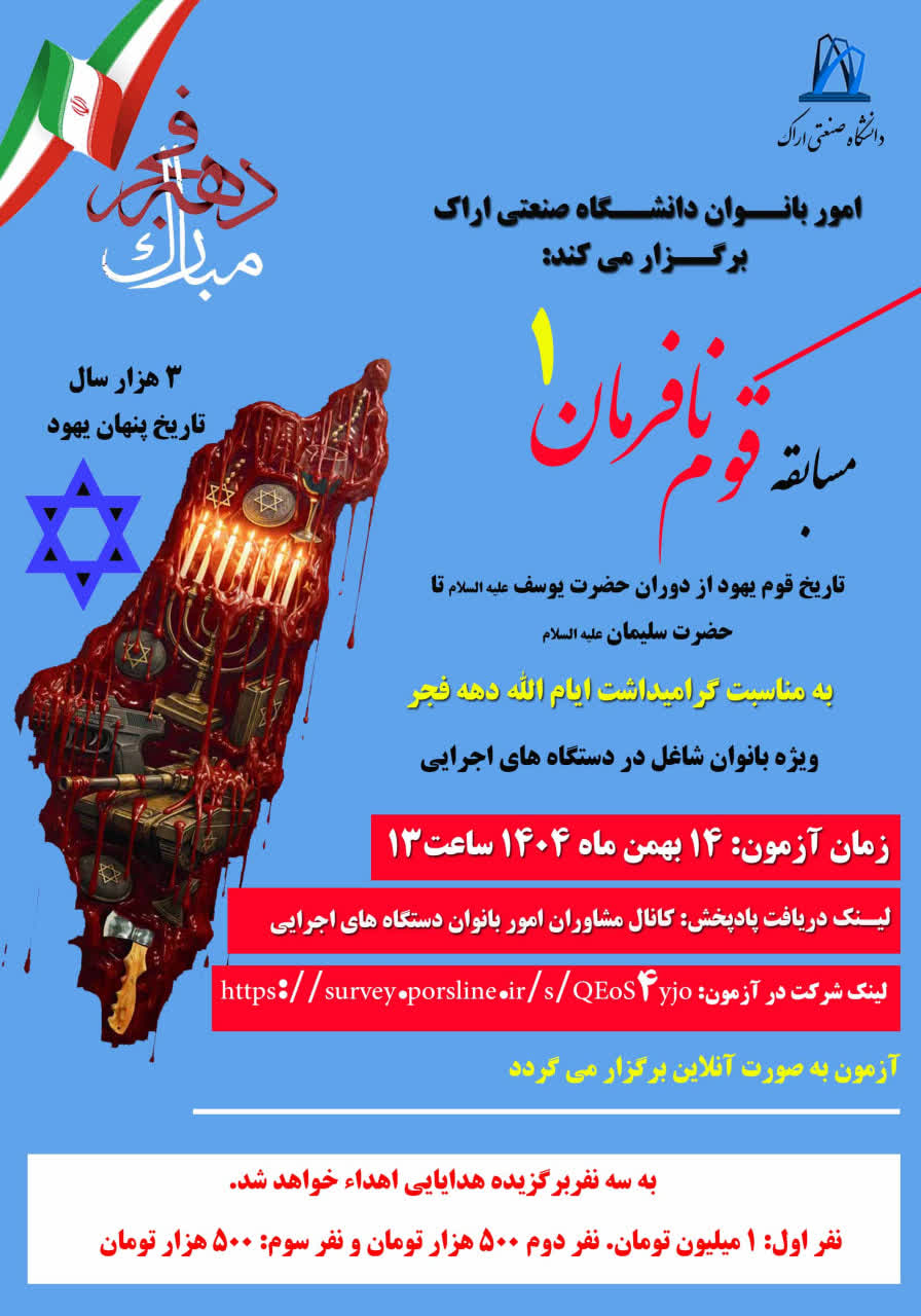 مسابقه قوم نافرمان ۰۸ بهمن ۱۴۰۴ | ۱۰:۳۹ کد : ۵۷۷۴۳ اطلاعیه ارسال به دیگران نام شما ایمیل شما ایمیل دریافتکننده ارسال انصراف تعداد بازدید:۱۲۵ برگزاری مسابقه قوم نافرمان، در ایام الله دهه فجر